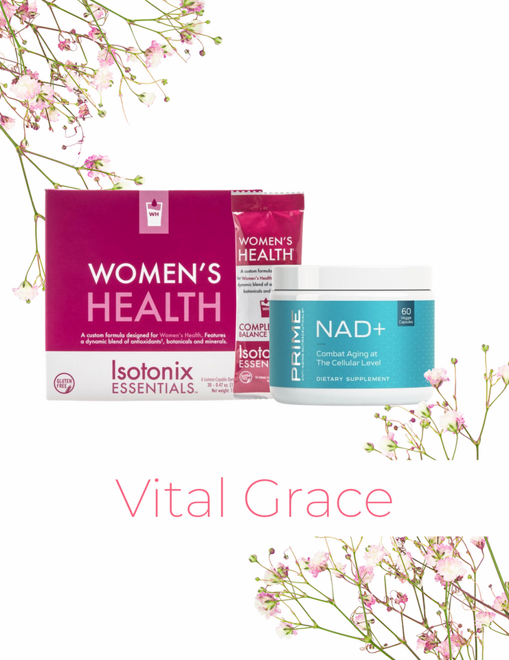 Give her the gift of vitality. Isotonix Women’s Health supports hormonal balance, bone health, and emotional well-being—while NAD+ Essentials works at the cellular level to restore energy, slow aging, and promote longevity. Together, they empower her body to feel younger, stronger, and more balanced, naturally. It’s grace, redefined from the inside out.